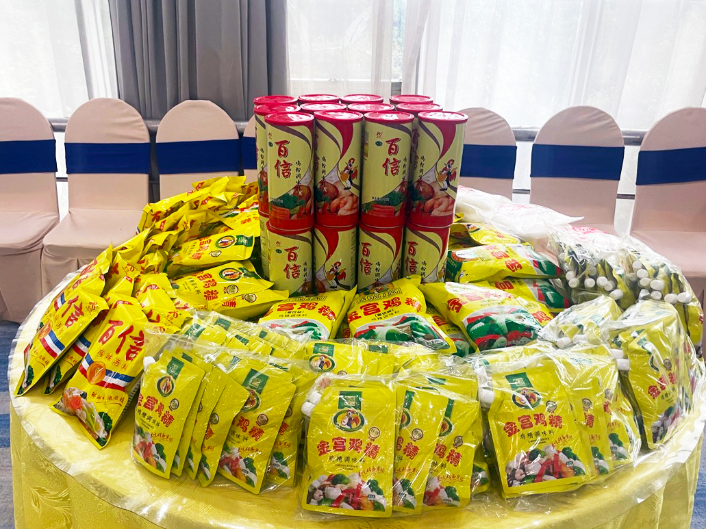 活動(dòng)現(xiàn)場(chǎng)設(shè)有產(chǎn)品展示與推介專區(qū),金宮熱銷產(chǎn)品“特級(jí)雞精454克”強(qiáng)勢(shì)登場(chǎng),香味濃郁、提鮮持久,深受在場(chǎng)客戶青睞。同時(shí),金宮還帶來了多款新品,包括“新香辣系列調(diào)味料”“濃縮牛油火鍋底料”“青花椒嫩魚底料”等,讓客戶在試吃中充分感受金宮在產(chǎn)品創(chuàng)新方面的持續(xù)突破與品質(zhì)堅(jiān)守。