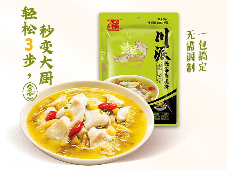 總之,金宮酸菜魚(yú)調(diào)料是一款非常出色的酸菜魚(yú)調(diào)料,它使酸菜魚(yú)的味道更加豐富多彩,令人回味無(wú)窮。如果您喜歡酸菜魚(yú),那么一定要試試金宮酸菜魚(yú)調(diào)料,相信您一定會(huì)愛(ài)上它。