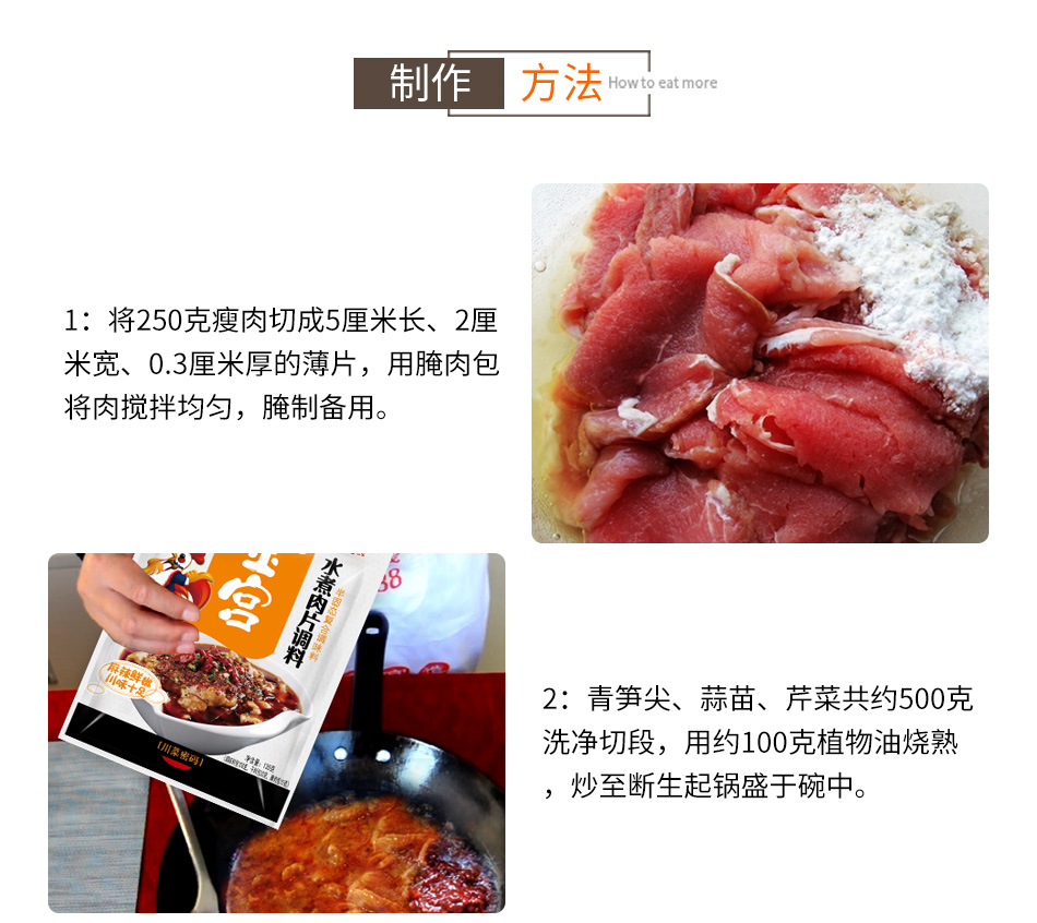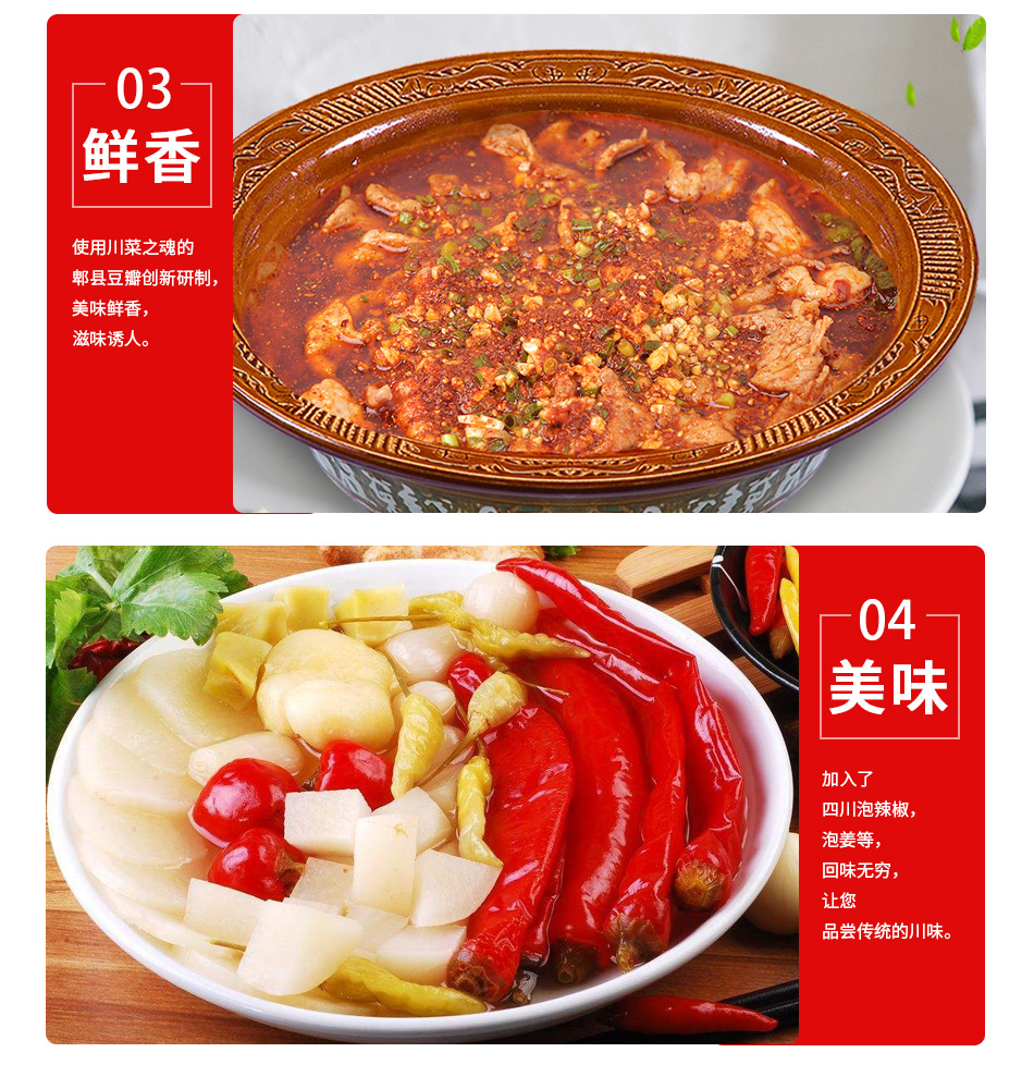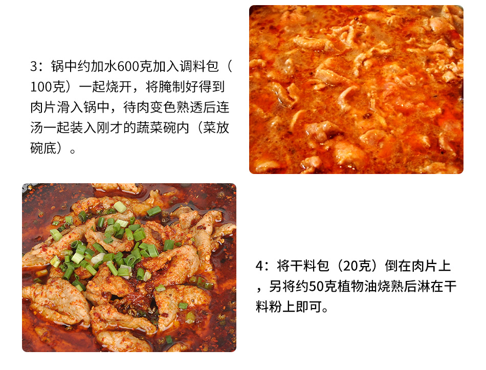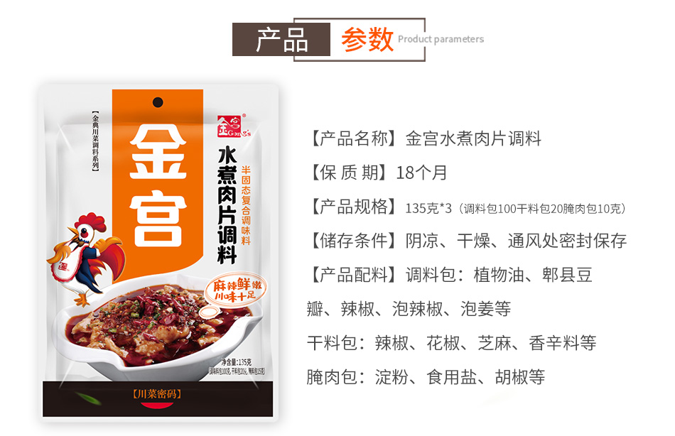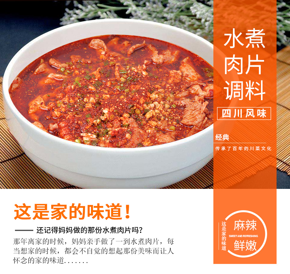 產(chǎn)品簡(jiǎn)介:四川名菜—水煮肉片,起源于四川自貢,是一道地方名菜,其特色麻辣鮮香,為四川家常美食之一。金宮水煮肉片調(diào)料傳承經(jīng)典,創(chuàng)新研制,烹飪簡(jiǎn)單易上手,湯紅油亮,麻辣味濃,椒香突出,和家人朋友一起分享美味。