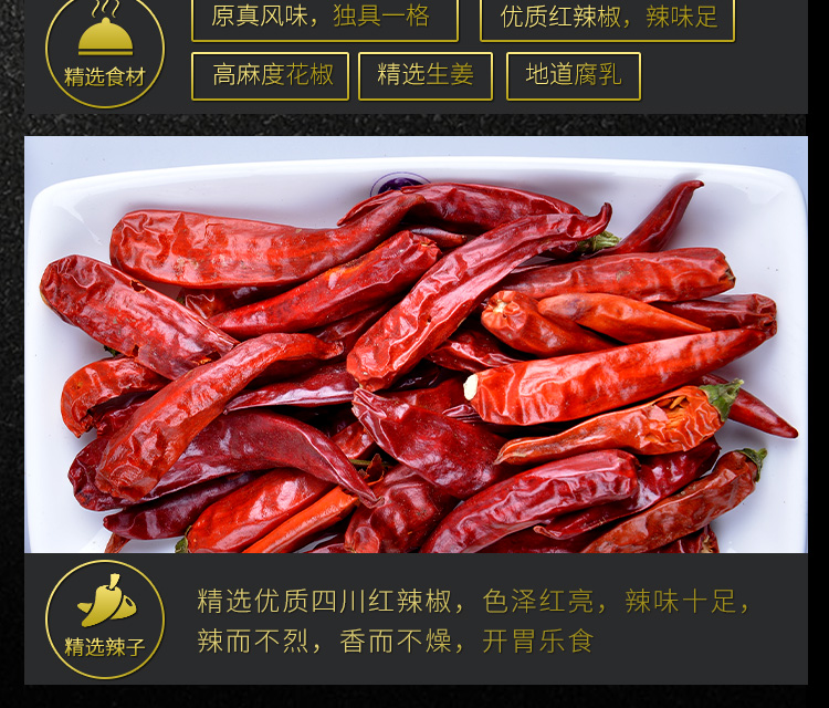 產(chǎn)品簡(jiǎn)介:本品精選多種原料,經(jīng)現(xiàn)代工藝精制而成。充分體現(xiàn)出川菜“―菜一格”的飲食文化風(fēng)格。
