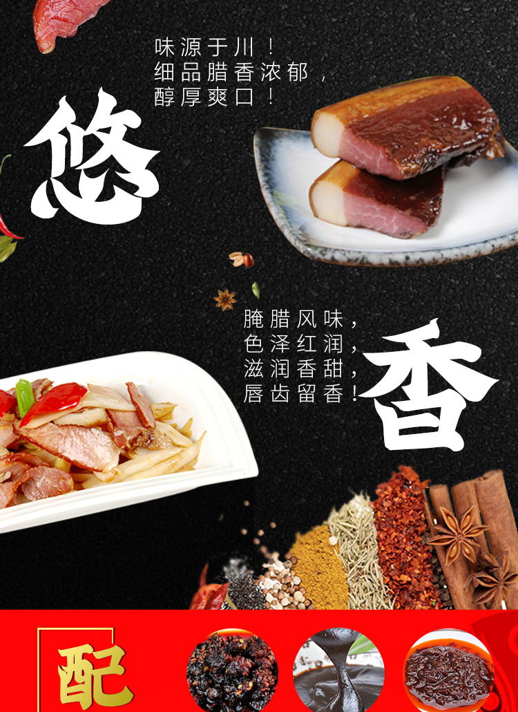 產(chǎn)品簡(jiǎn)介:本品精選多種四川本地優(yōu)質(zhì)原料,用本調(diào)料制作的臘肉充分體現(xiàn)了香味濃郁、肥而不膩、瘦而不柴、滋味鮮美的特點(diǎn),是家庭、食堂、餐廳制作四川臘肉的上乘調(diào)料。