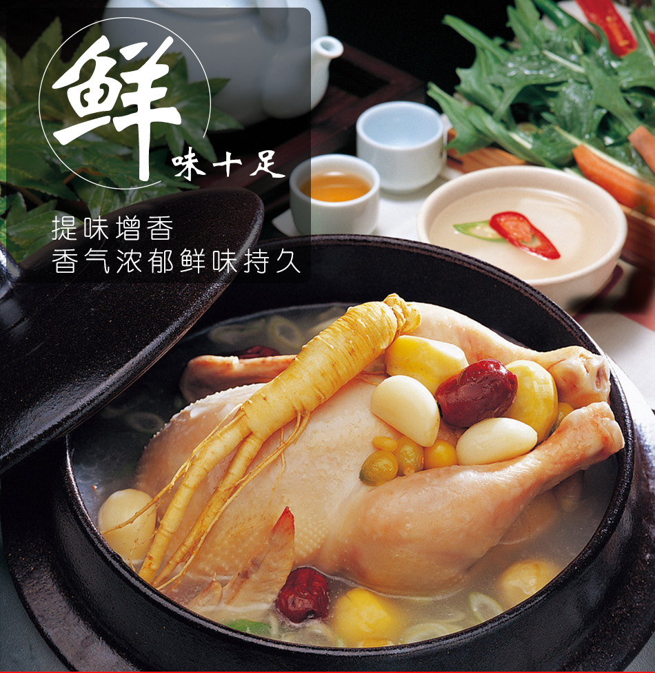 產(chǎn)品特點(diǎn):濃縮雞湯精華,滋味純正,鮮美宜人。