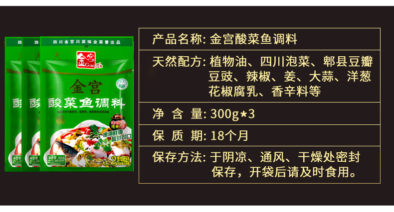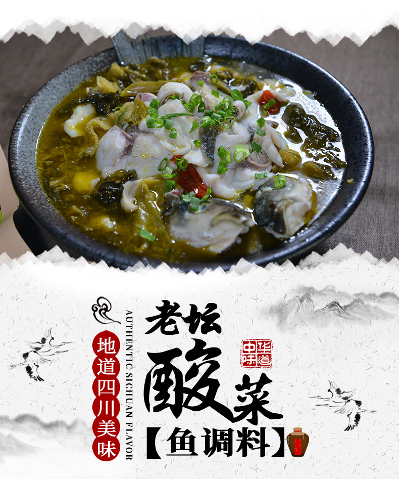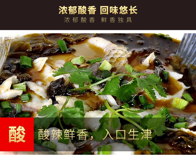 產(chǎn)品簡介:本產(chǎn)品憂選傳統(tǒng)老壇炮制的酸菜和小米辣,由金宮資深調(diào)味師精心調(diào)配,經(jīng)小火慢炒,讓酸、辣充分融合面獨樹一幟。食客在烹制過程中無需再次炒作,加適量清水下料煮魚至熟即成。
