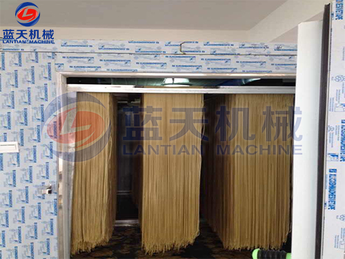 1.冷風(fēng)定條:通常采用不加溫,而加強(qiáng)空氣流動(dòng)的方式,以大量的干燥的空氣來除濕氣,使面條形狀初步固定,除去表面的水分,烘干溫度約控制在20-26度,空氣55-65%RH。